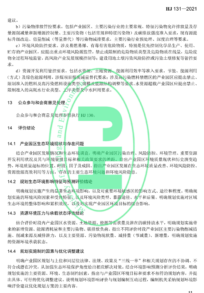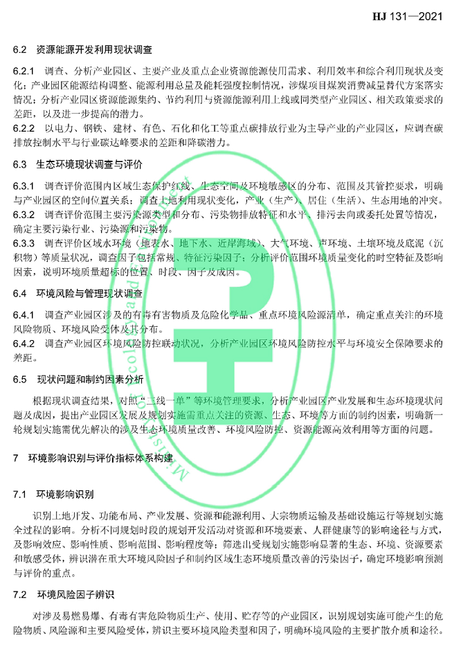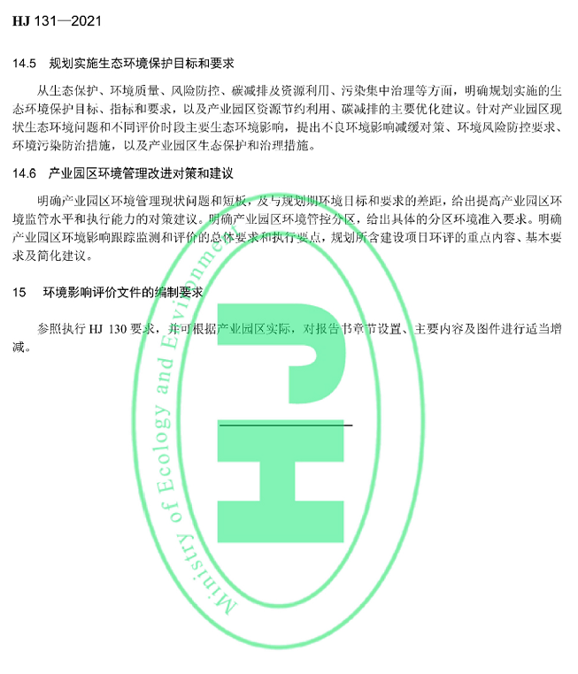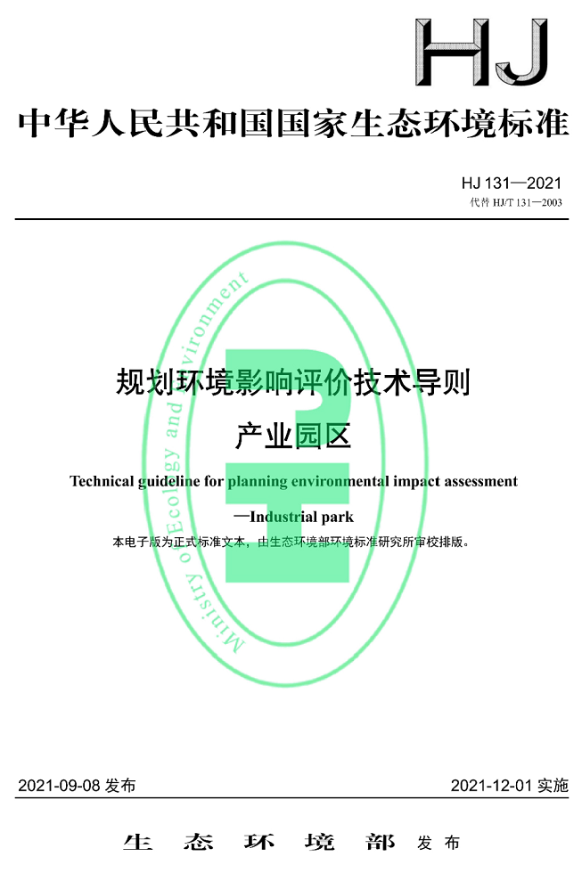 规划环境影响评价技术导则产业园区(标准号:HJ131—2021代替HJ/T131—2003)